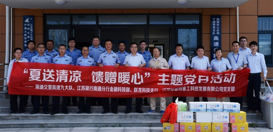6月(yuè)29日(rì)下(xià)午,江蘇銀(yín)行(xíng)南(nán)通(tōng)分(fēn)行(xíng)金(jīn)融科(kē)技(jì)部、躍龍科(kē)技(jì↓)支行(xíng)黨支部,聯合長垣縣億騰起重配件有限公司黨支部、江蘇格雷特重工(gōng)科(kē)技(jì)發展有(yǒu)限公司黨員(yuán)同α志(zhì),共同舉辦“夏送清涼 饋贈暖心”主題黨日(rì)活動。兩支黨員(yuán)隊伍在各自(zì)黨支部書(shū)記的(de)帶領下(xià),來(lái)到( dào)南(nán)通(tōng)交警高(gāo)速九大(dà)隊,為(wèi)交警同志(zhì)送上(shàng)一(yī)份夏日(rì)的(de)清涼∞。